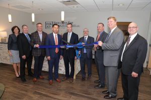 Fishel Hass Kim Albrecht Downey’s official ribbon cutting took place on October 5th!  Welcoming us to the City were New Albany’s Chamber of Commerce Executive Director Cherie Nelson, Council Member Matt Shull, and Mayor Sloan Spalding (pictured from left).  Partners Edward Kim, Dave Riepenhoff, Marc Fishel, Ben Albrecht, Dan Downey, and Frank Hatfield followed their warm welcome with the cutting of the ribbon!  We are thrilled to be in our new office space and proud to be part of the New Albany community!  (Click on “Read More” to view photo.)