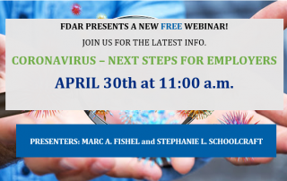 FDAR Partners Marc Fishel and David Riepenhoff will offer a Coronavirus update with the latest information employers need to know. Please join us on Tuesday, March 31, at 11:00 a.m. for this free Webinar. To register, simply